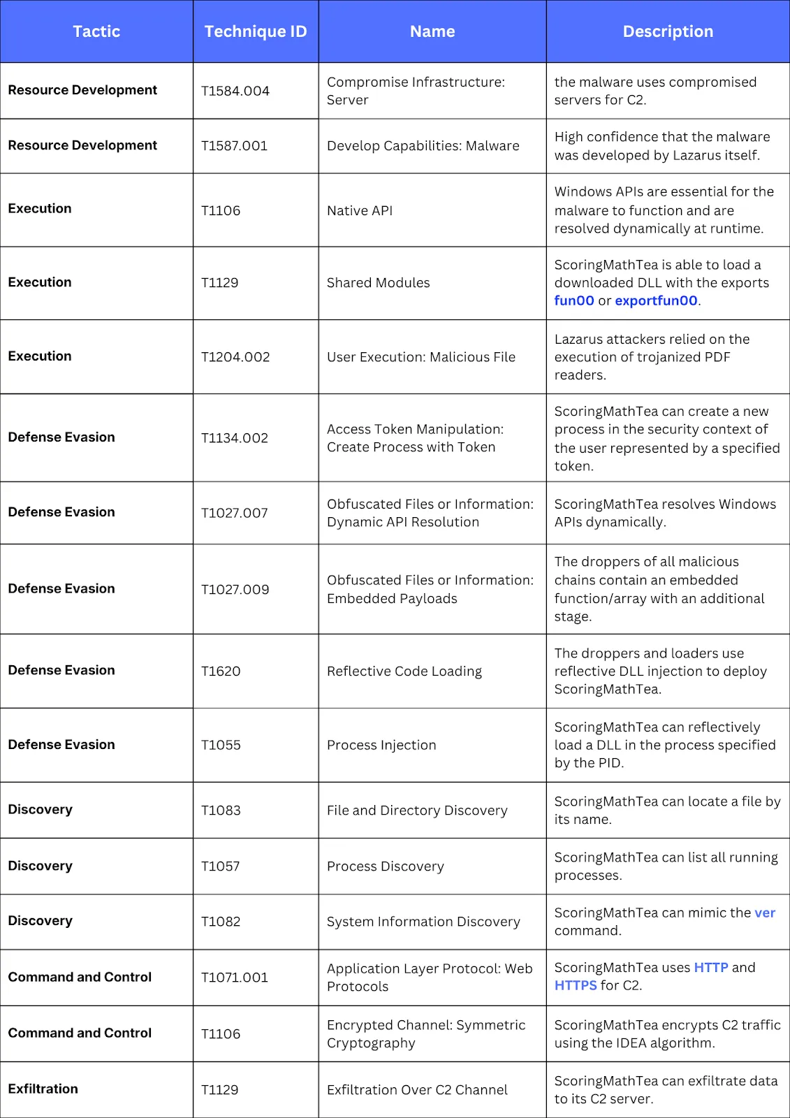 ScoringMathTea is Lazarus's “flagship” malware that the group has used in some of its most prolific and successful campaigns. It’s a and has been seen in a number of attacks, including: