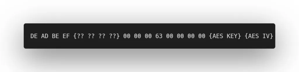 DE AD BE EF is the magic signature for Havoc, and while it can be modified in source, it is the default value. The next four bytes are actually the AgentID, and 00 63 is the DEMON INIT command sent from the client to the team server.